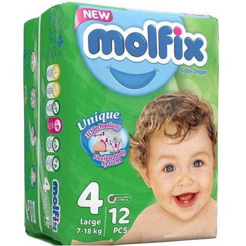 پوشک مولفیکس ۷ تا ۱۸ کیلوگرم سایز ۴ بزرگ ۱۲ عددیناموجود